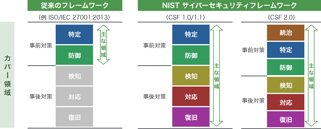 図1 NIST CSF 2.0と従来のセキュリティフレームワークの違い